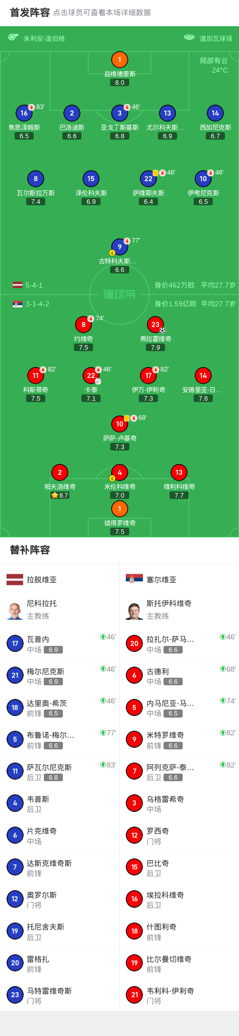 03月 04 2026 0 塞尔维亚1-0拉脱维亚,弗拉霍维奇一锤定音 xiaoqiao 2026-03-04 意甲 43 北京时间9月6日世界杯欧洲区预选赛 第一阶段小组赛 第5轮,拉脱维亚对阵塞尔维亚。塞尔维亚弗拉霍维奇破门。最终比分拉脱维亚 0-1 塞尔维亚。精彩瞬间第12分钟,塞尔维亚球员卡泰助攻弗拉霍维奇打入一球。球队阵容技术统计